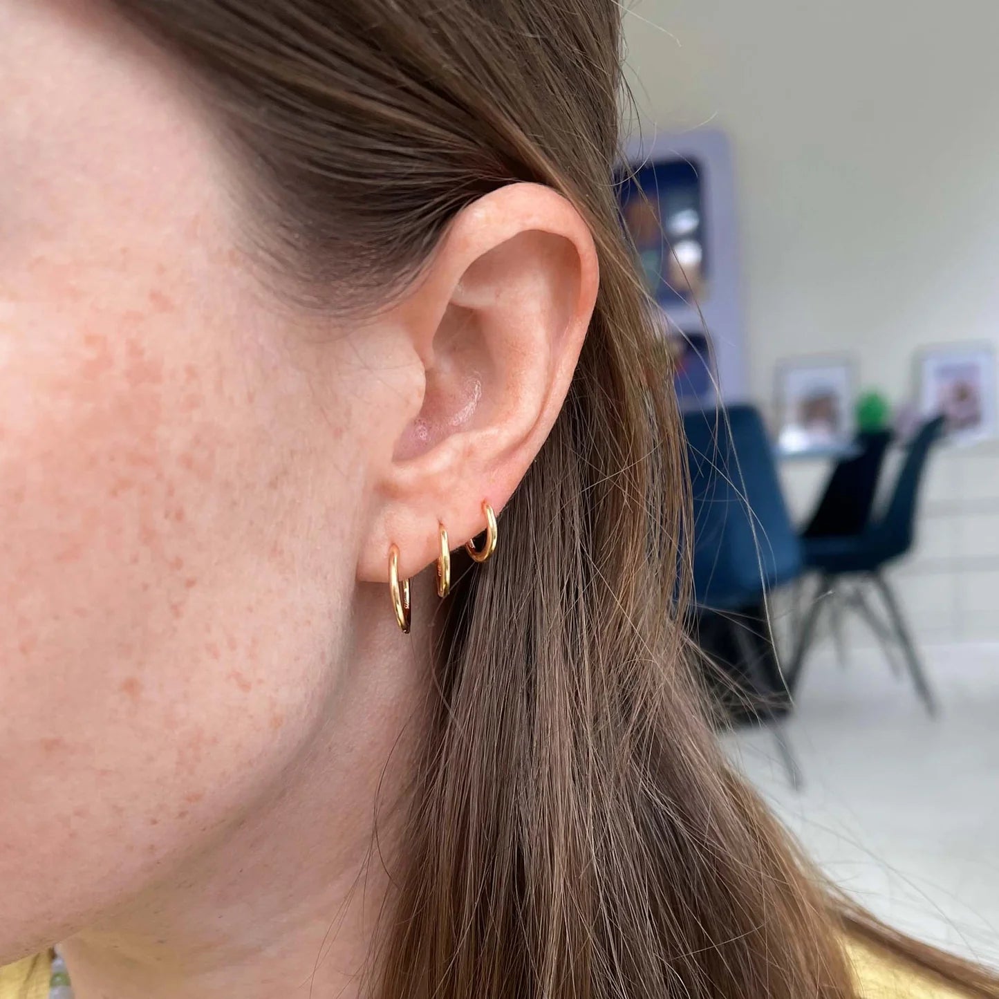 I wear these everyday, goes well for almost all outfits. Love these simple hoops.